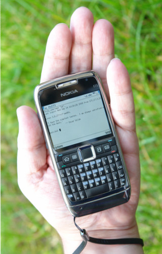 Connects via a local WLAN (802.11b/g) or the cellular network.